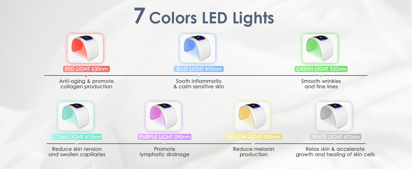 - 7-color LED light therapy for targeted skin care routines